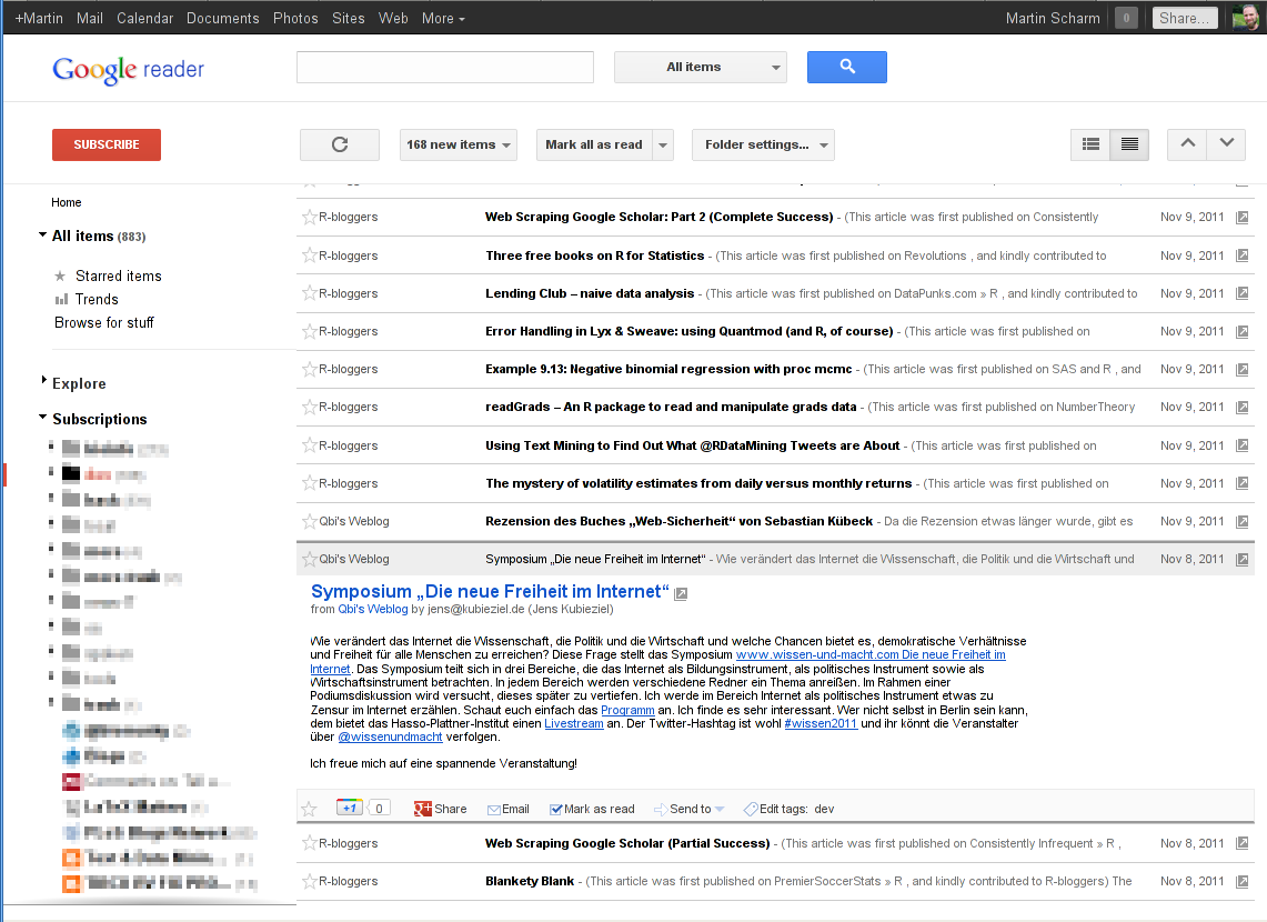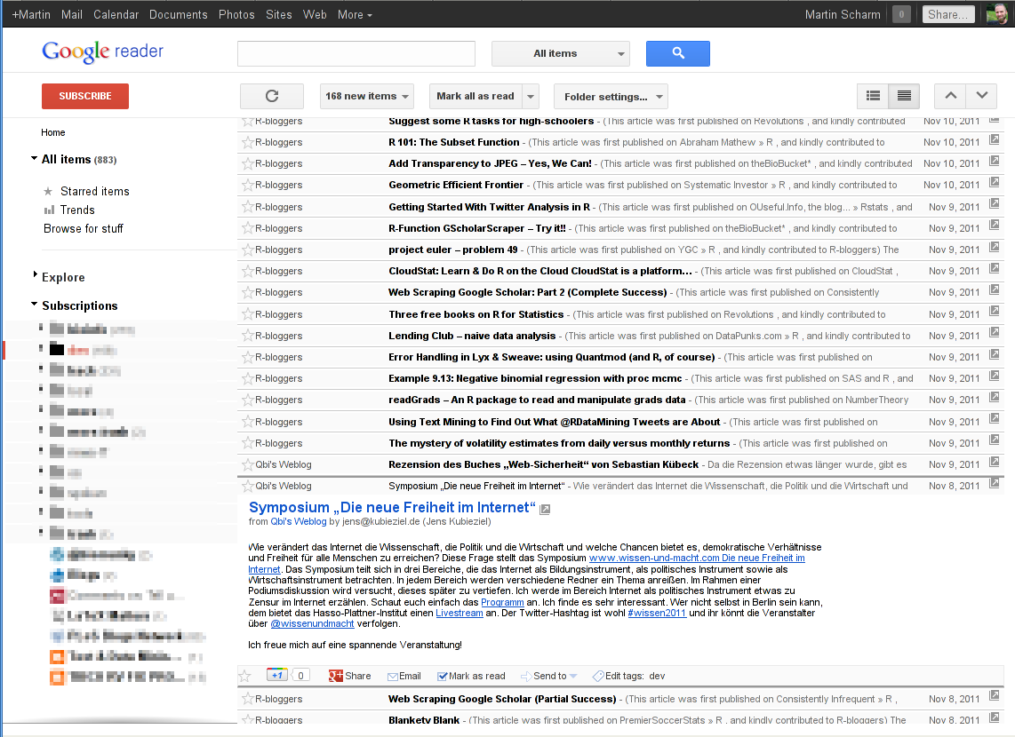 If you are using Google’s Reader to aggregate news feeds you might have recognized that Google re-engineered its feed-reader to fit into the styles of other Google-services.
