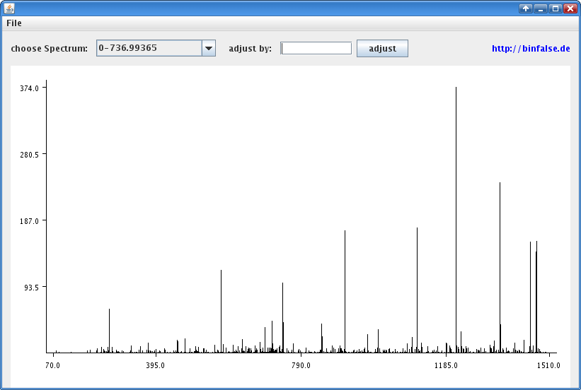With this tool you can shift all m/z values of such an PKL-file. You can decide whether to shift all spectra or just a single one of the file! After shifting the data just save it as new PKL-file, so the original values are not lost.
